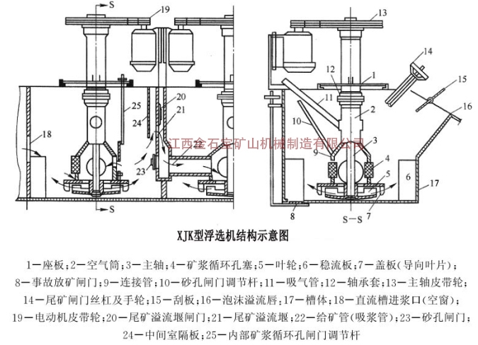 ◆ 在运转前需检查浮选槽内是否有杂物,防止杂物卡住叶轮或堵塞循环孔和通道,必要时应打开放矿闸门冲洗;
