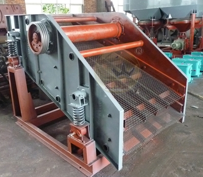 ZD型矿用单轴振动筛原理是利用电机通过皮带传动大皮带轮,所产生的离心惯性力加在筛箱振动系统的内力、带动筛箱系统的重心做圆运动。配重轮上偏心重块的质量,保证它们所产生的离心惯性力能够平衡筛箱旋转时所产生的离心惯性力。矿物在筛面做跳跃运动,筛分效率高。