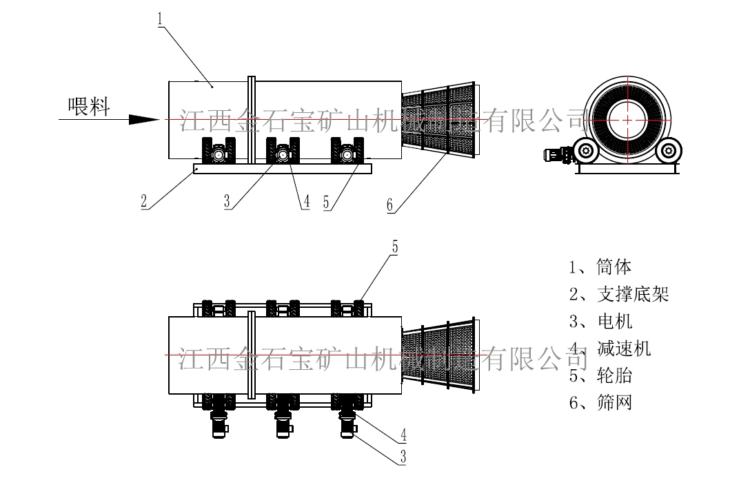 2.长形的洗矿筒体使得物料在内的逗留时间长,充分且有力地将物料完全分散。