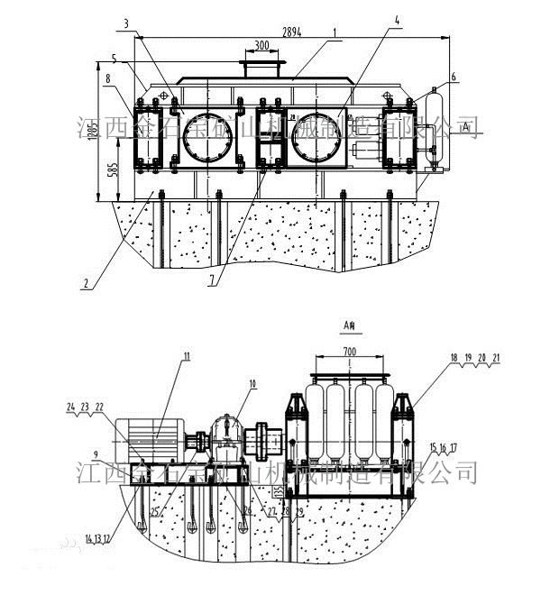 2、驱动机构:是由两个电动机,通过三角皮带传动到槽轮上拖动辊轮,按照相对方向运动旋转。在破碎物料时,物料从进料口通过辊轮,经碾压而破碎,破碎后的成品从底架下面排出。