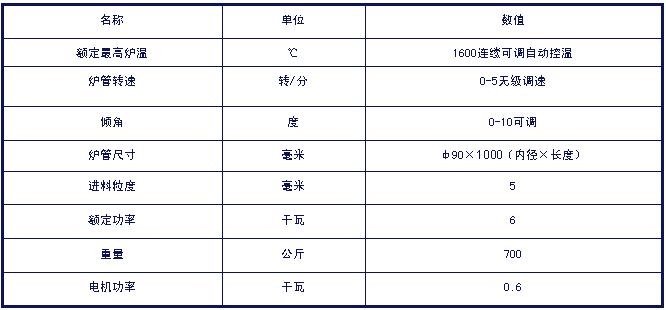 主要技术参数: