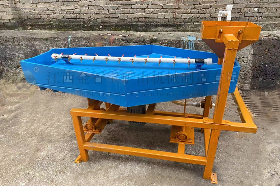 Gemeni 式摇床,又称贵金属摇床,根据比重原理分选。为回收细颗粒金而设计,选出的精矿可直接熔炼。适用于30微米至2毫